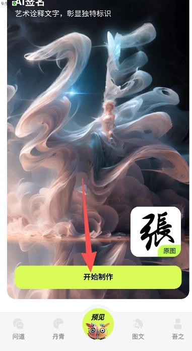 在预见页面找到“AI签名”选项,点击“开始制作”按钮,即可进入后续操作步骤。