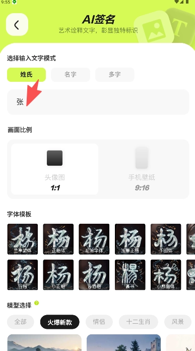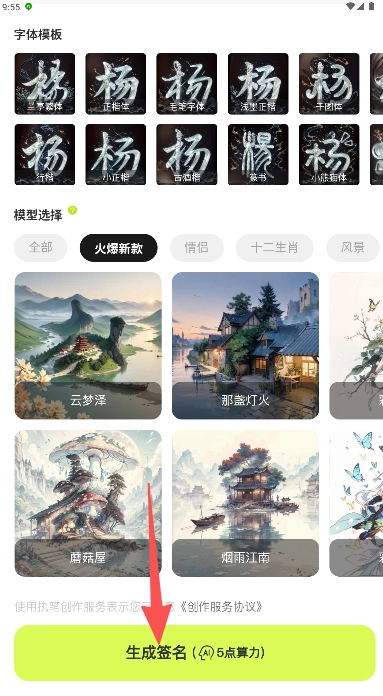 在“火爆新款”模板中点击“生成签名”按钮,即可完成艺术签名的制作。