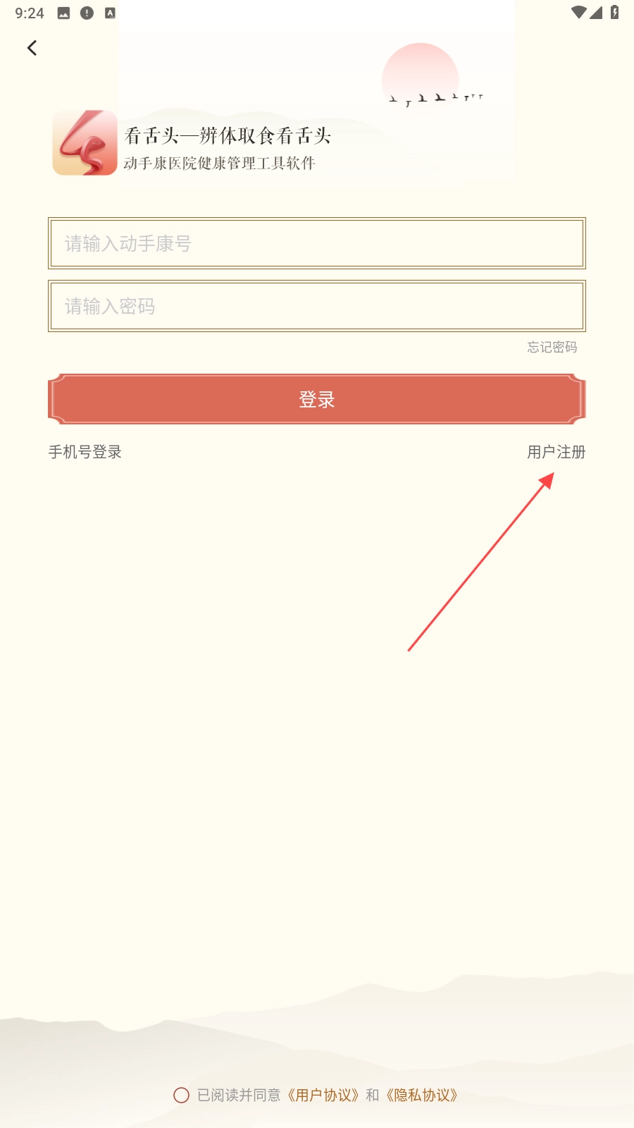在登录界面,点击【用户注册】