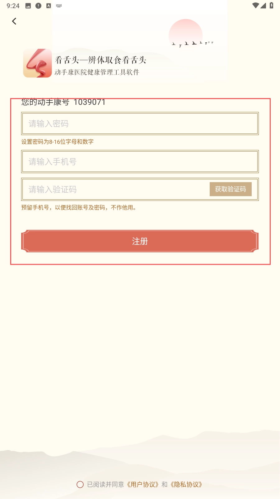 在注册界面输入【手机号】【验证码】【密码】即可