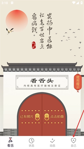 进入应用后,点击【自己】