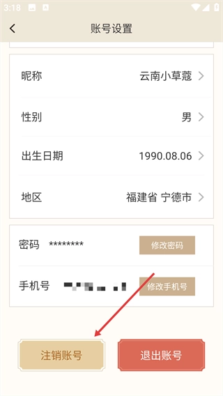 点击【注销账号】按钮,完成账号注销操作。