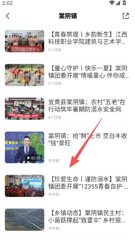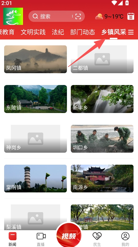 在乡镇风采板块选择目标乡镇,查看相关资讯列表。