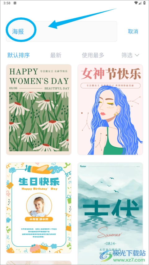 在首页的搜索框中输入你想要的海报类型,然后挑选出你喜欢的模板。