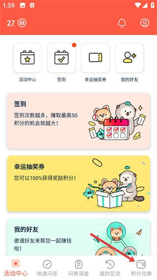 任务类型丰富且难度较低,签到、邀请好友等辅助任务轻松上手,搭配问卷答题快速累计积分,加速兑换心仪奖励。