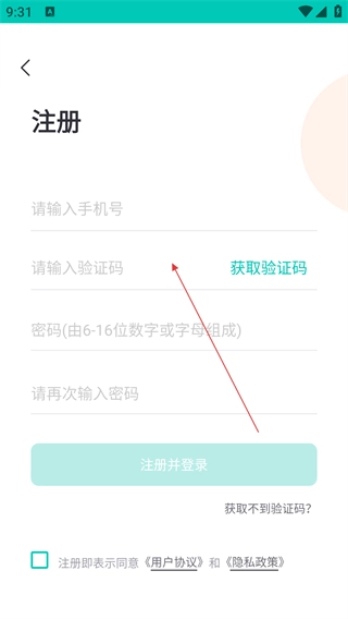 进入注册界面后,首先填写手机号码,接着点击【获取验证码】按钮来获取验证码,随后将收到的验证码填入对应位置。