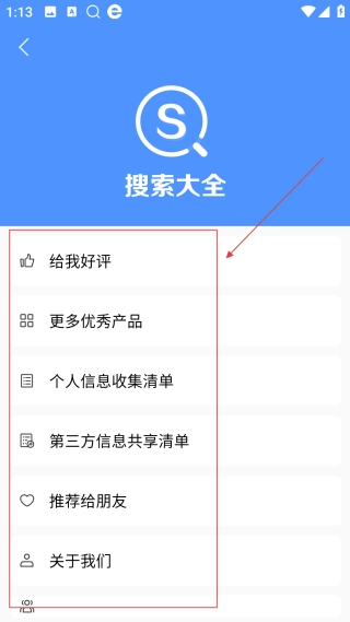 进入功能菜单界面后,你可以使用【给我好评、推荐给朋友】等功能,对软件相关服务进行管理。