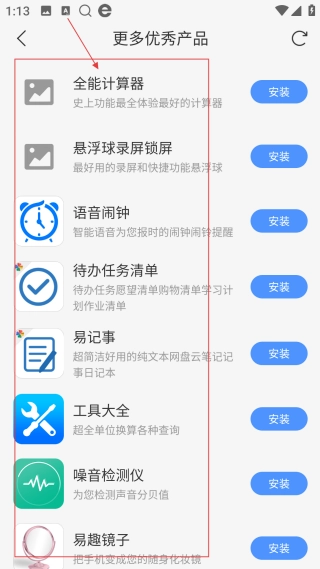 进入更多产品界面,能查看【全能计算器】等产品,点击安装即可获取对应的工具应用。