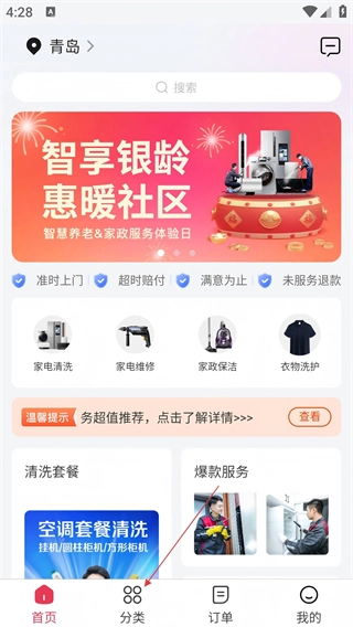 在分类页面里,找到并点击【家电清洗】分类,接着挑选你想要的服务项目。