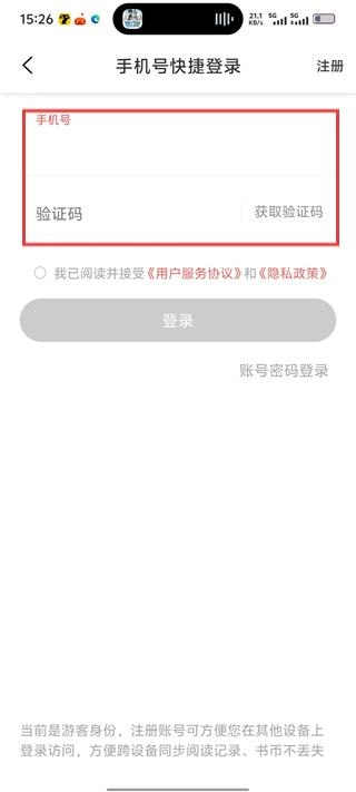 在手机号快捷登录界面,输入手机号和验证码。