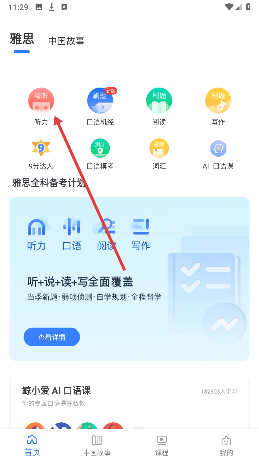 雅思备考专业:配备自适应学习系统,包含口语备考规划、模拟考试、机经等内容,同时覆盖听力训练与词汇书资源,从多个维度助力考生高效备战雅思。