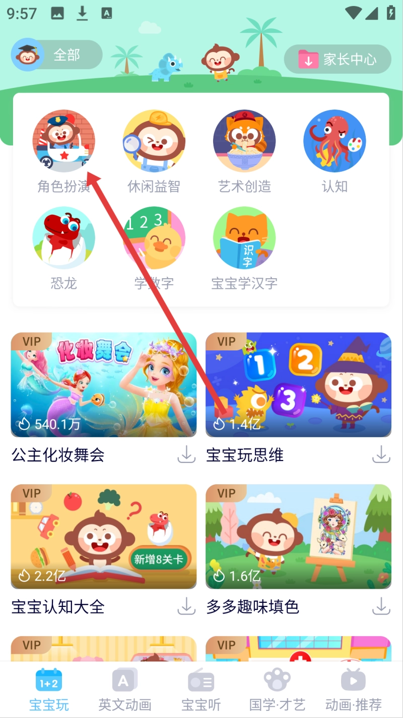 在宝宝玩页面点击【角色扮演】分类,进入对应的分类页面。