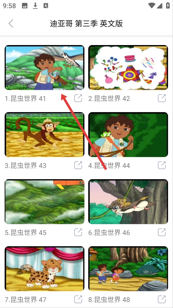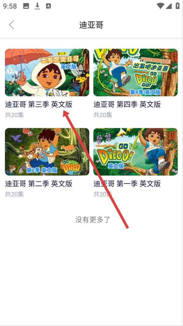 在迪亚哥动画列表页面点击【迪亚哥第三季英文版】,即可进入该季对应的集数列表页面。