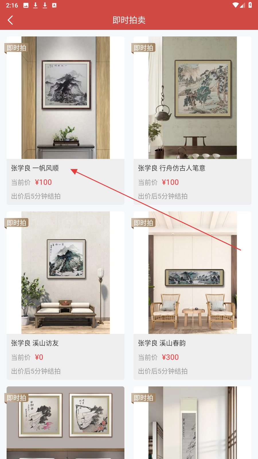 点击首页【即时拍】,进入即时拍卖商品列表。