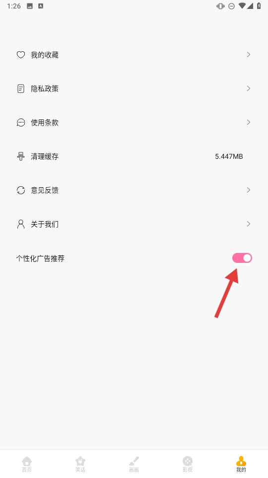 我清理了页面的5.447MB缓存,调整了个性化广告推荐的开关,还管理了账号设置。
