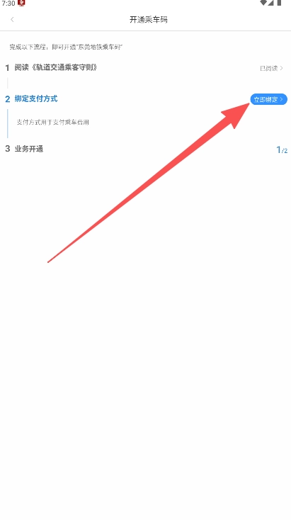 乘车码功能的开通流程十分明确,从阅读协议到绑定支付方式,形成了清晰的操作指引路径。