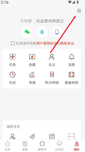 进入后找到并打开设置按钮,查看各项资料管理入口。