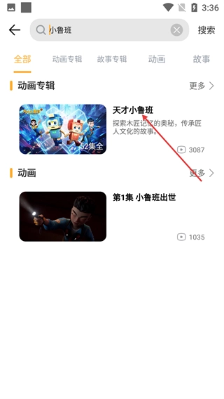 在搜索结果中,点击【天才小鲁班】动画专辑。