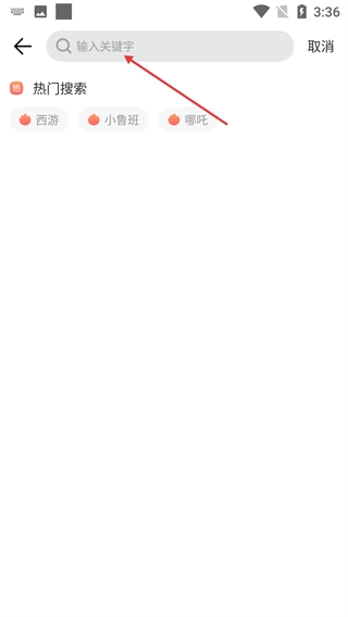 进入应用,点击首页搜索框,进入搜索页面。