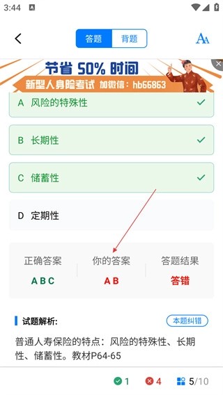 提交答案后,你可以查看正确答案、自己的答案以及答题结果,同时也能查看试题解析来巩固所学知识。