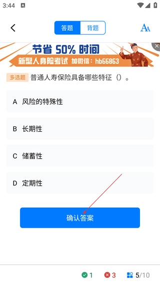 在答题页面完成题目解答后,点击【确认答案】按钮提交答案。