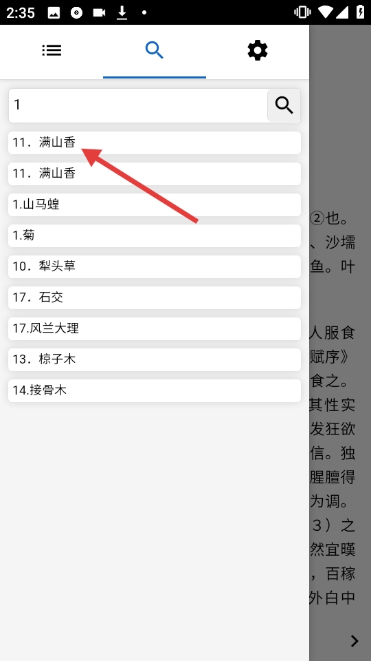 在搜索结果里点击“满山香”这一条目,就能查看它的相关内容。