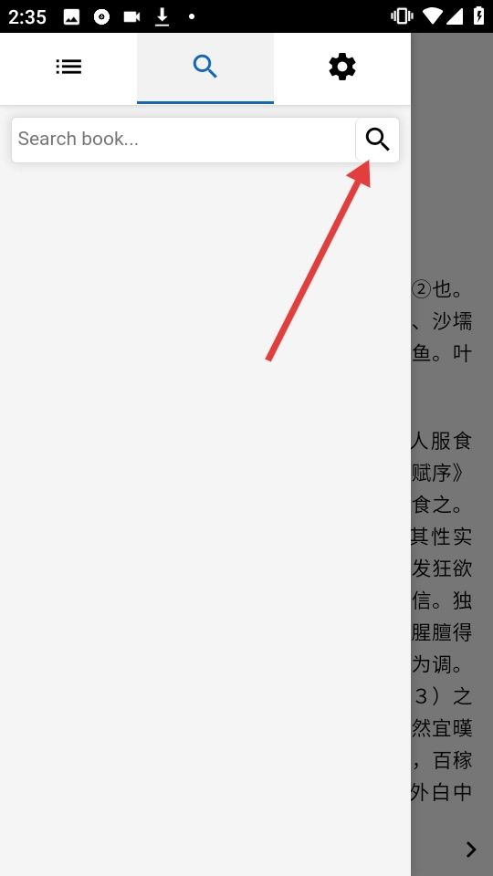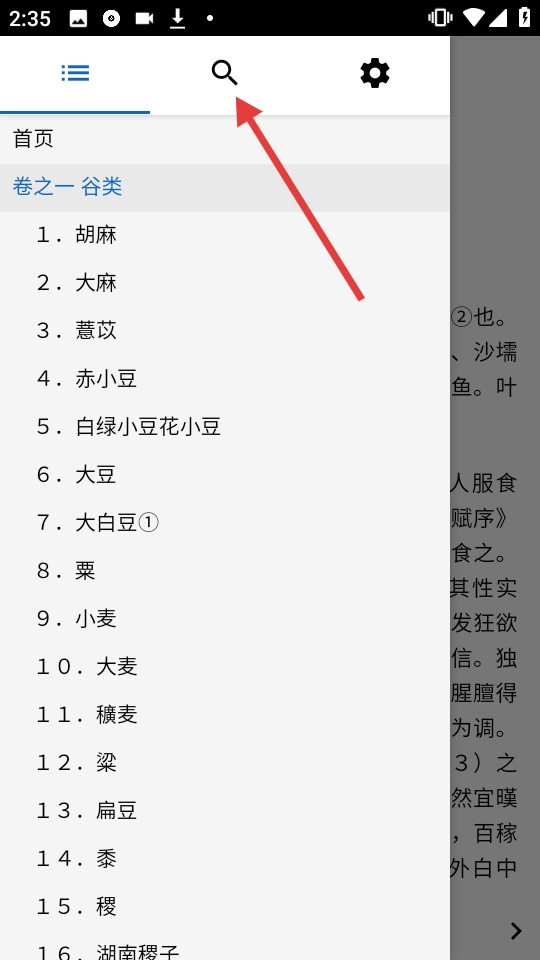 在展开的目录界面里,点击顶部的搜索图标,就能进入搜索界面。