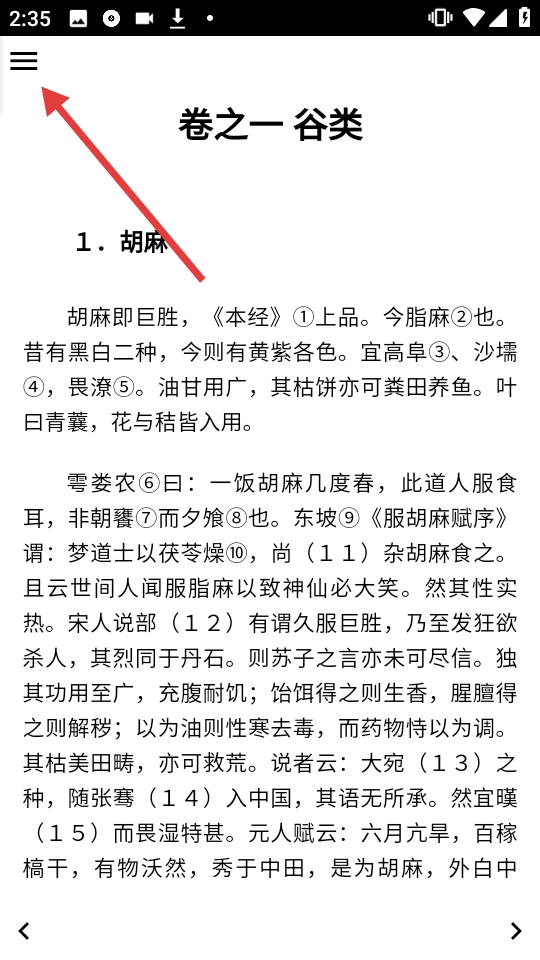 点击页面左上角的菜单按钮,展开目录列表。