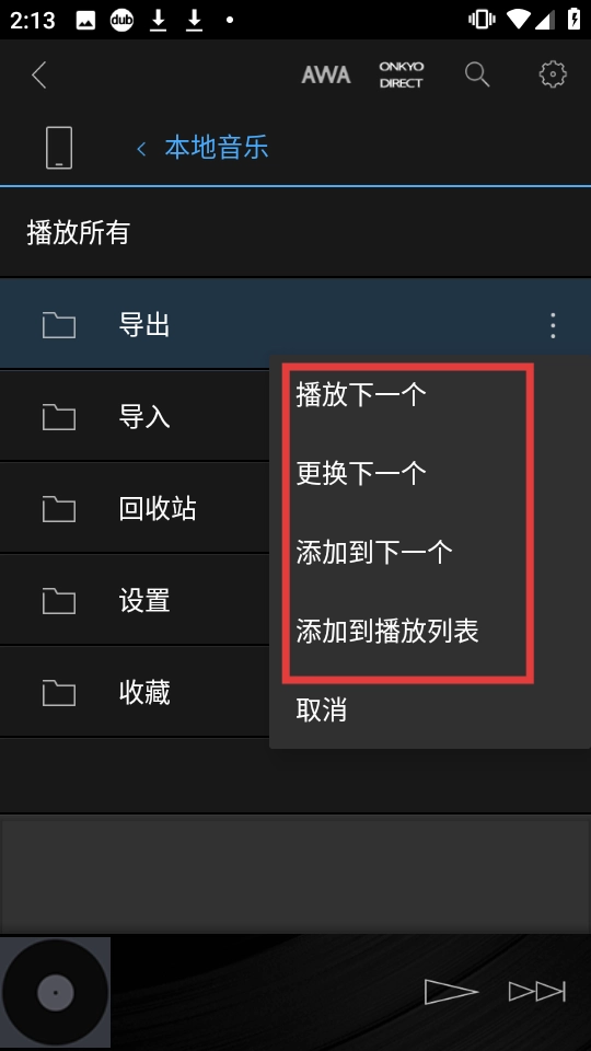 在展开的菜单里,你可以选择【播放下一个】【更换下一个】【添加到下一个】【添加到播放列表】这些选项来执行相应操作。