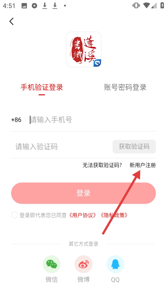 在登录页面,点击【新用户注册】选项。