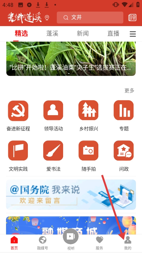 界面的分区设计清晰直观,首页推荐、蓬溪本地、新闻直播等板块划分明确,操作简便,能帮助用户快速定位到所需内容。