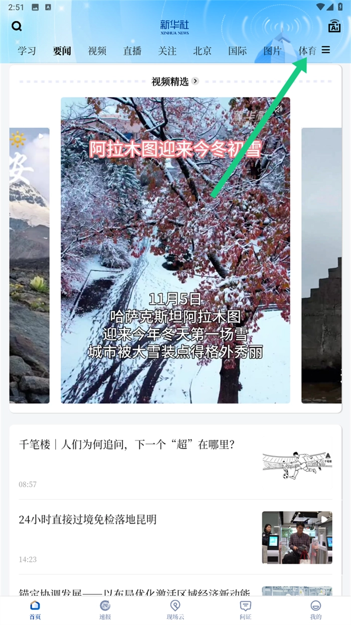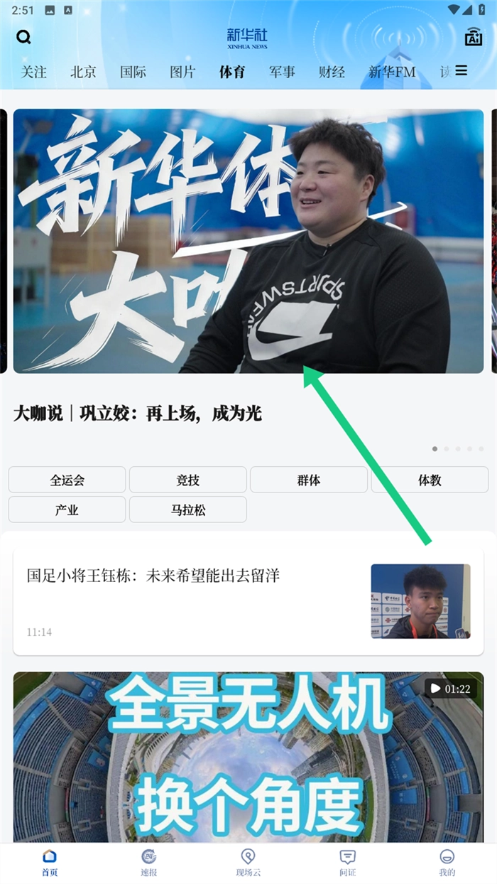 打开新华社平台,点击顶部导航栏的【体育】分类入口,进入体育新闻专区,就可以开始浏览并寻找你感兴趣的新闻文章了。