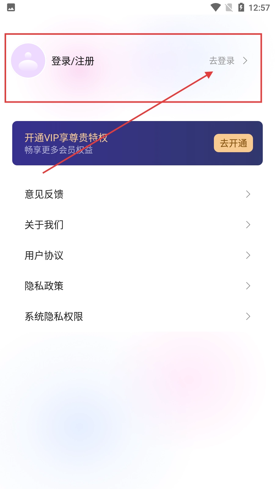 在设置界面中,点击【登录/注册-去登录】的区域,就能进入用户登录页面。