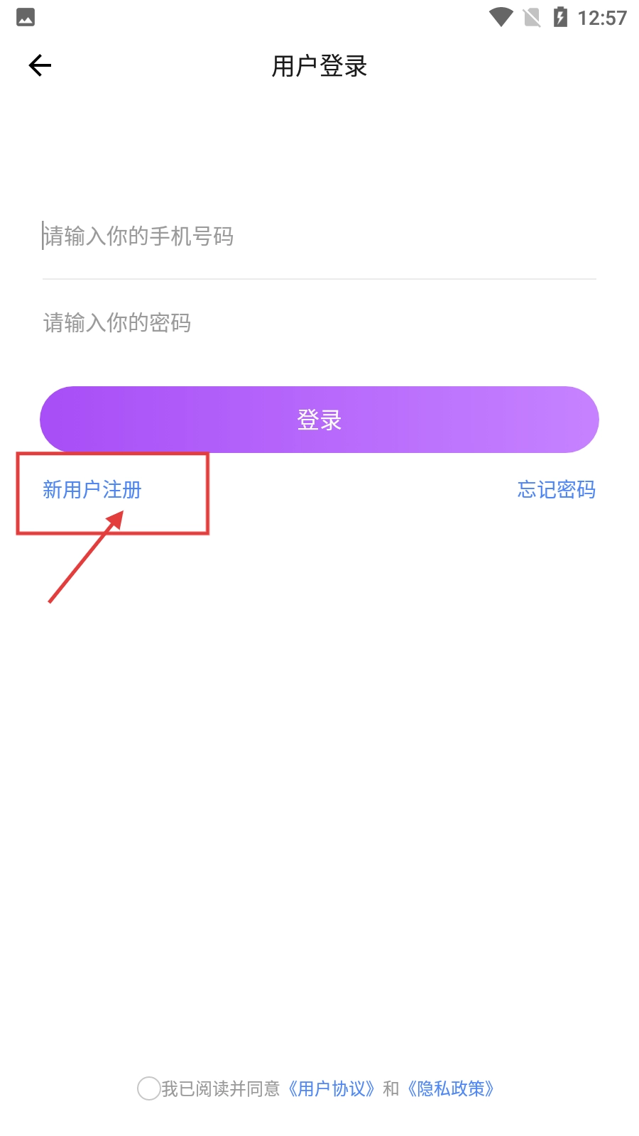 在用户登录界面,点击【新用户注册】按钮,即可进入用户注册界面。