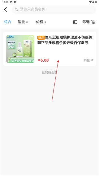 在护理液的商品列表里,找到你要找的那个商品并点击,进入商品详情页面后,就可以查看该商品标价为【6】元、已售出【8】件等相关信息了。
