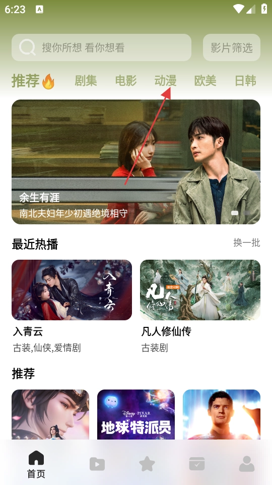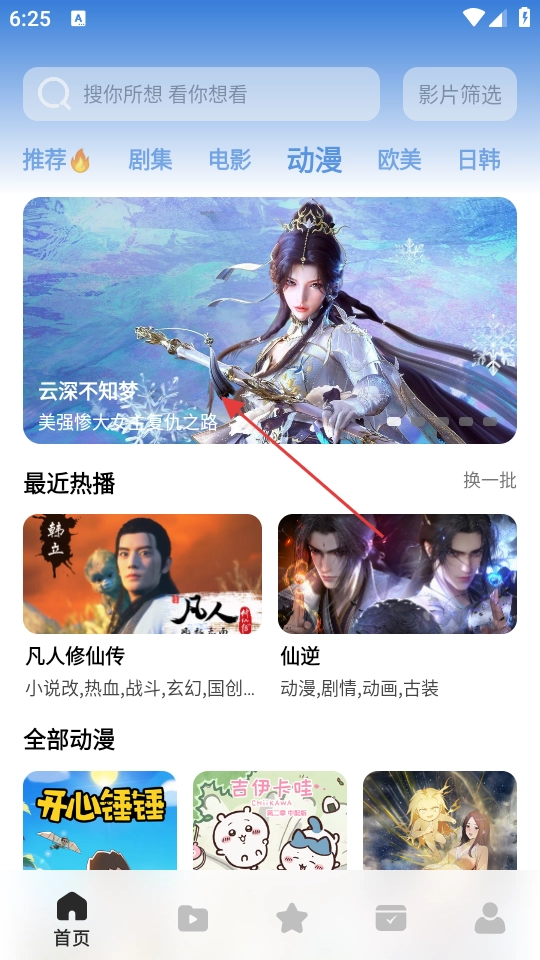 在主界面,点击【动漫】分类标签,进入动漫频道页面。