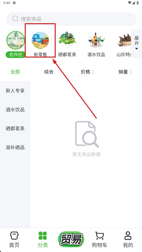 在分类页面中点击【新零售-分类图标】,即可查看对应的商品列表。
