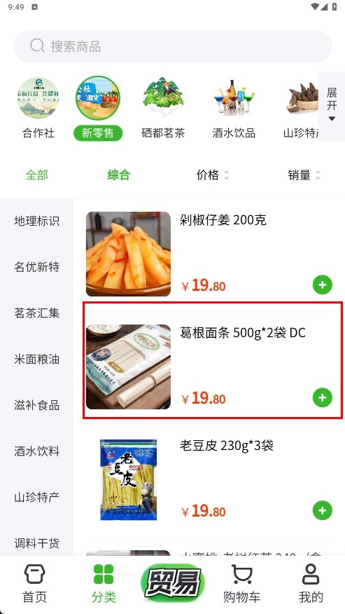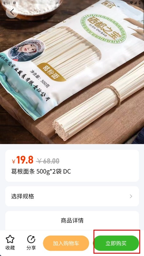 在商品列表里找到你想要的商品(比如【葛根面条-商品名称】),点击它就能进入商品详情页了。