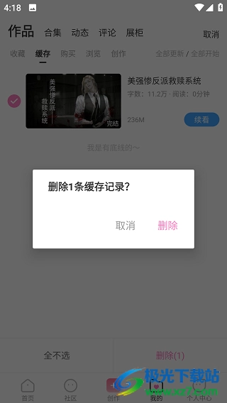 弹出的窗口会给出提示,只要继续点击删除按钮,就能把自己的缓存删掉啦。