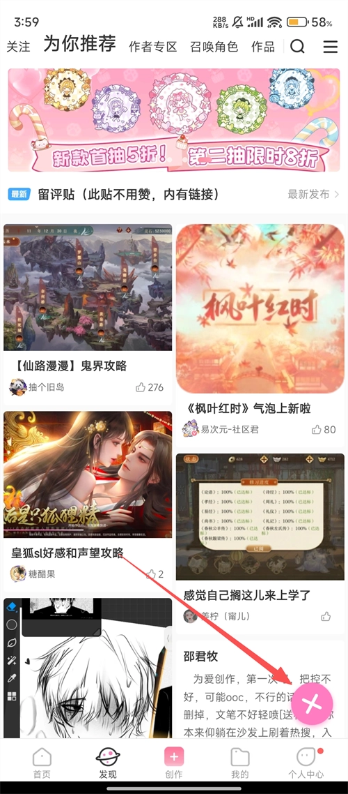 我们先打开易次元应用,接着点击底部导航栏的【发现】标签,进入到发现页面后,就可以准备发布动态了。
