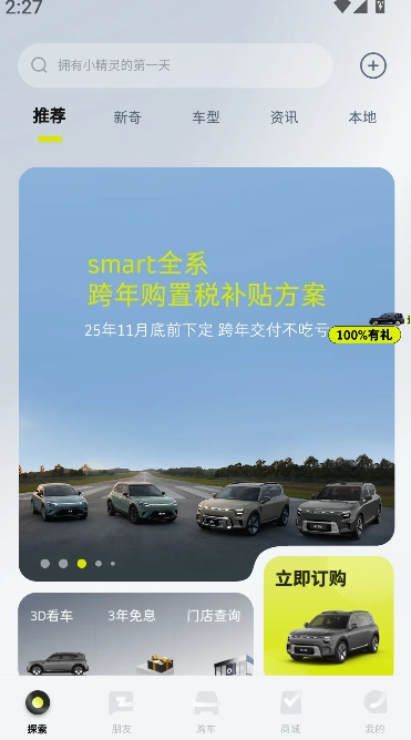 打开《smart汽车》进入首页后,在车型展示区域可以查看各车型的外观、参数以及特色介绍,这样能方便大家对车辆有一个初步的认识。