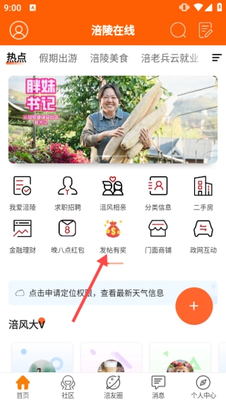 打开软件,点击页面中的【发帖有奖】进入下一界面
