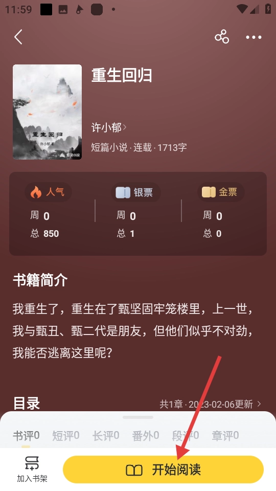 在小说详情页面,点击【开始阅读】按钮,就能开启小说阅读之旅。