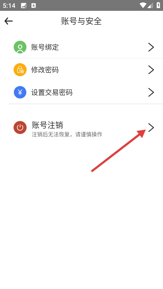 在【账号与安全】页面里,找到【账号注销】这个选项并点击它。
