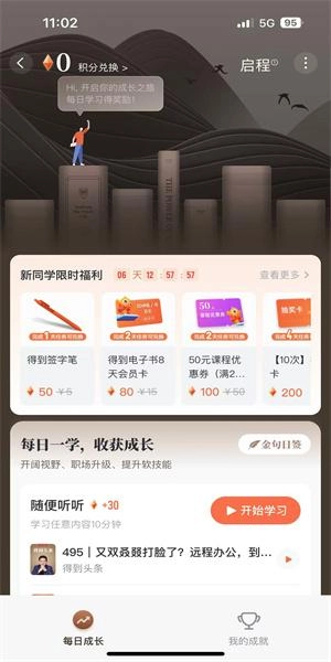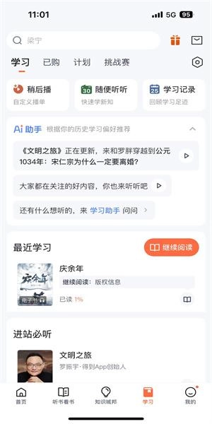 打开软件在学习界面可以看见最近的学习内容。