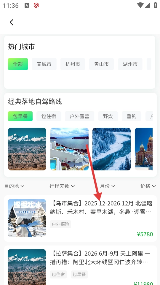 在落地自驾页面,挑选你感兴趣的路线,点击进入该路线的详情页面。