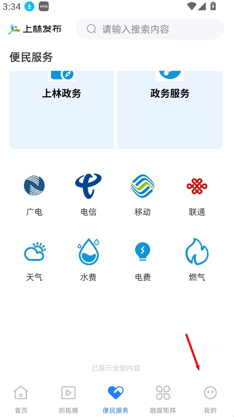 进入上林发布首页后,找到页面下方的“我的”选项并点击,即可进入个人中心界面。