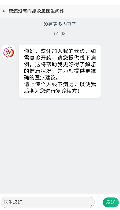 在诊室的聊天界面中,您能够拍摄并上传过往的检查报告、处方单之类的病历材料,系统支持PDF和JPG这两种格式,医生那边的终端会同步接收到这些资料并进行分析。