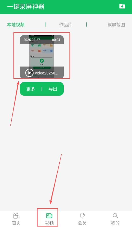 录屏结束后停止录制,在软件里找到视频页面的入口并点击进入,在视频页面中就能看到所有已保存的录屏视频文件。