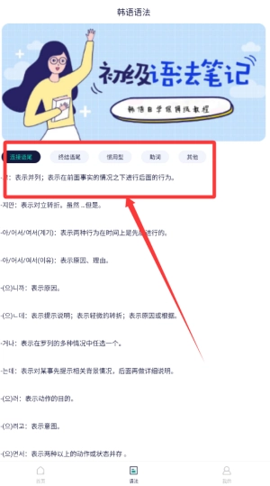 包含丰富的语法知识,针对不同层次的学习者提供适合的课程,帮助用户系统掌握韩语的基本结构与用法。